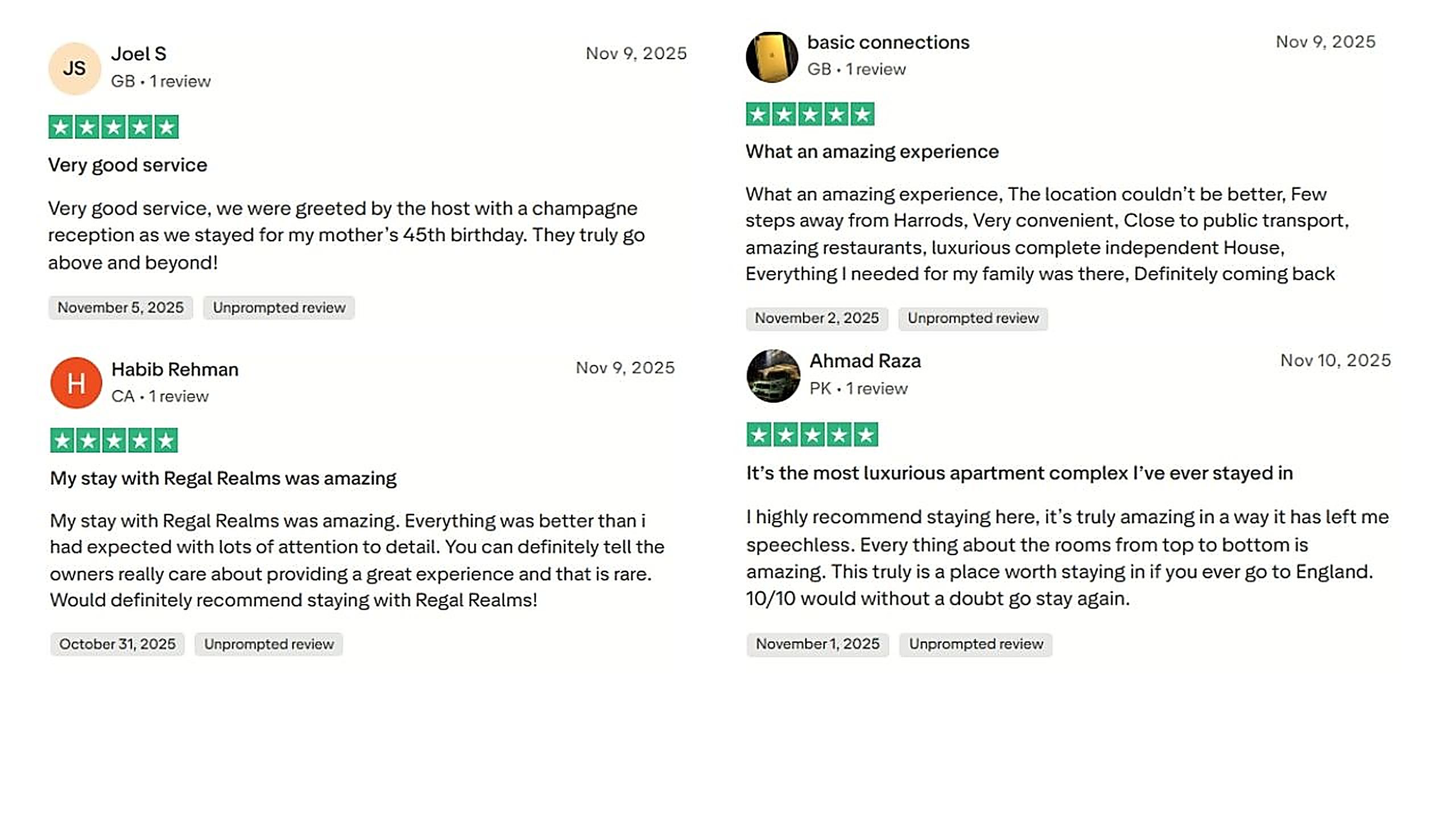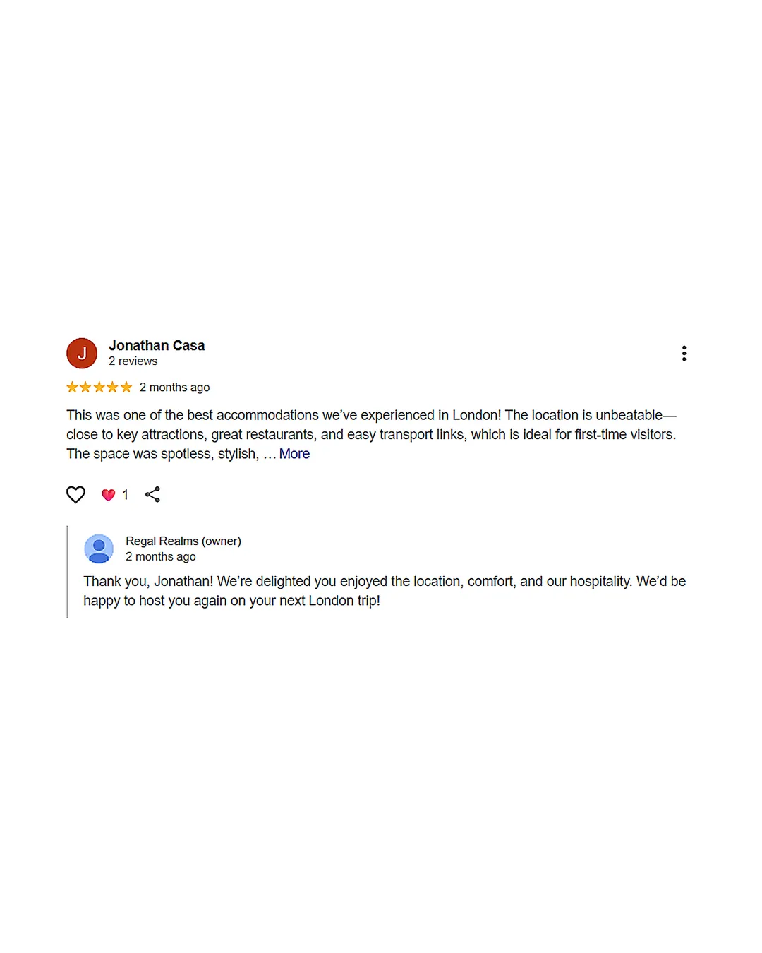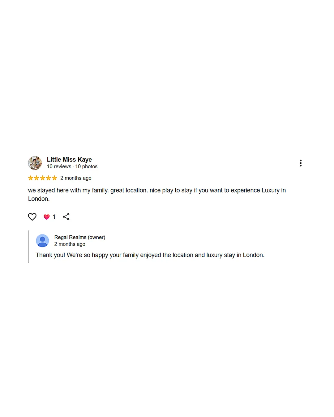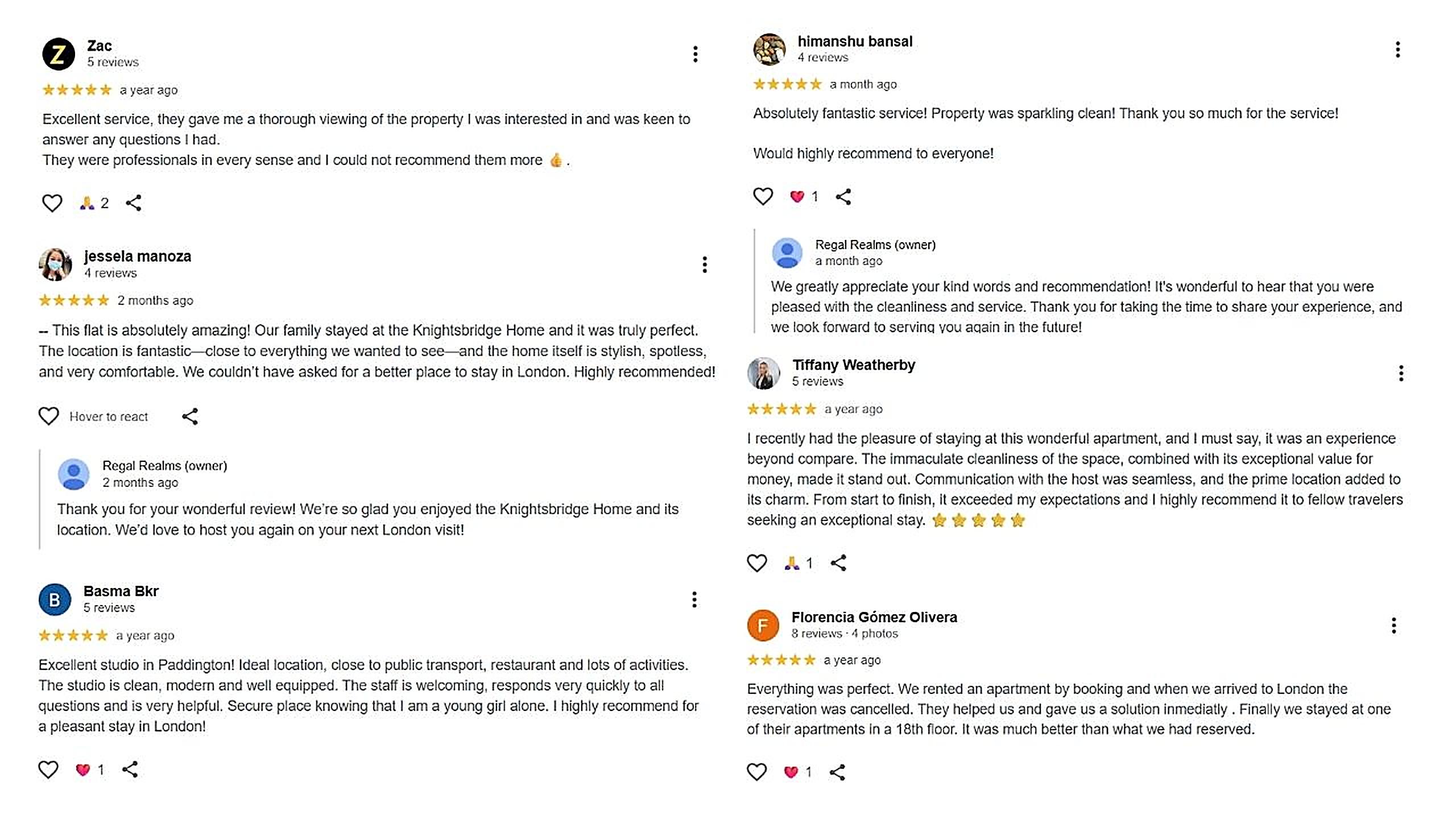 I care deeply about reliability and attention to detail, and Regal Realms truly exceeded my expectations. From the very beginning, every interaction felt professional, thoughtful, and effortless. Communication is clear, processes are smooth, and nothing is left to chance. I genuinely feel confident and at ease knowing my property is in the best hands.